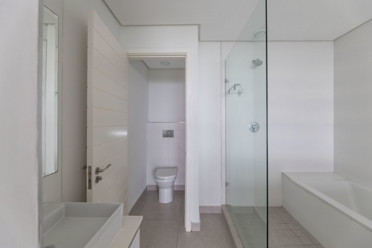 The kitchen is well appointed with gas stove top and oven, and a plumbing point for a dishwasher. Laundry is housed in a separate, discreet plumbing cupboard. A guest loo is tucked away near the entrance. The master bedroom is the epitome of space which is emphasised by the access to the balcony through glass sliding doors. The en-suite bathroom has a shower, a bathtub, basin and a separate loo. The family bathroom has a shower, loo and basin. The two other bedrooms comfortably accommodate queen-size beds. All bedrooms have built-in wardrobes and there is ducted airconditioning throughout this spacious, light, bright apartment.