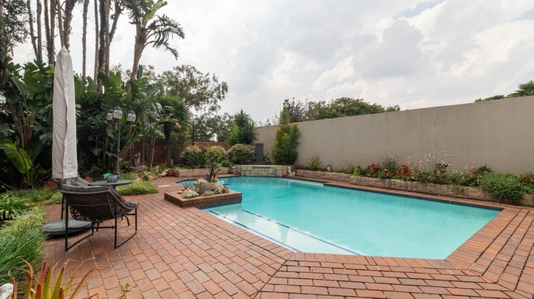 Covered Patio & Braai Area leading onto a magnificent, manicured garden with a sparkling pool — perfect for year-round entertaining.