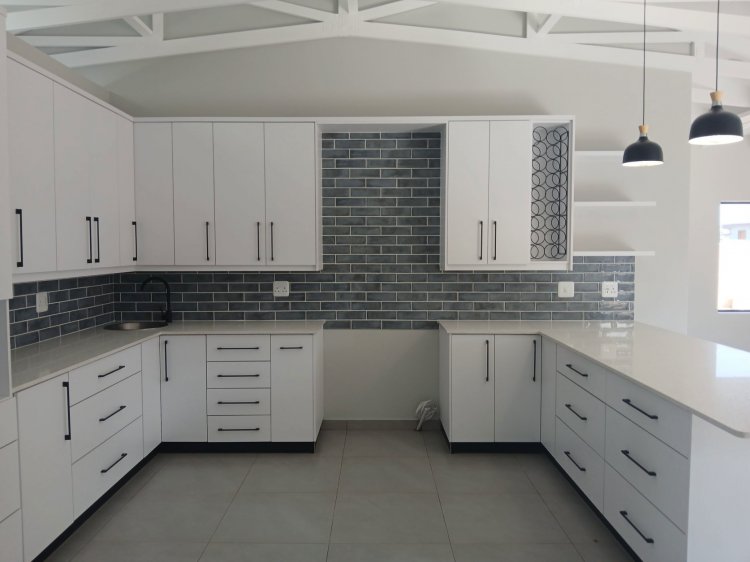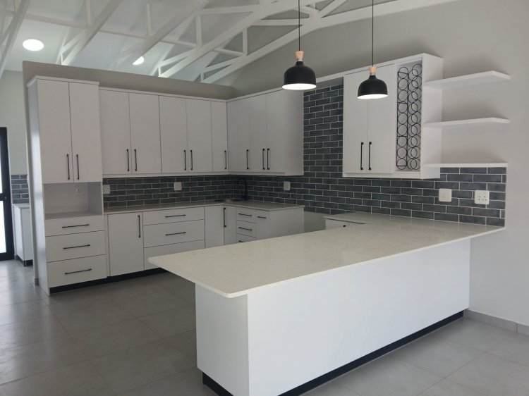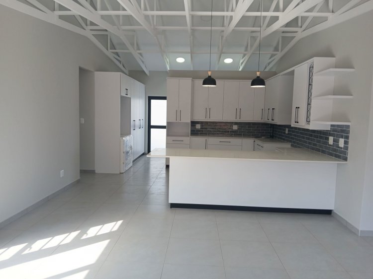 The spacious living area flows off the open plan kitchen with a indoor built in braai for all your entertainment needs.