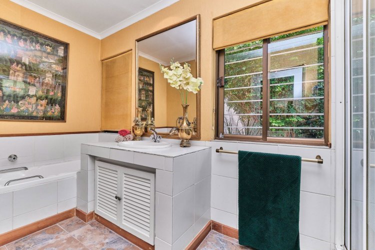This home is also the epitome of a safe haven. The Main bedroom overlooks the tranquil garden. The third bedroom and third bathroom are downstairs (currently used as a second living room but designed to have a seperate wing for a bedroom and bathroom if you like).