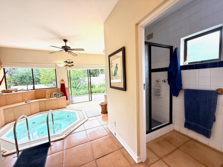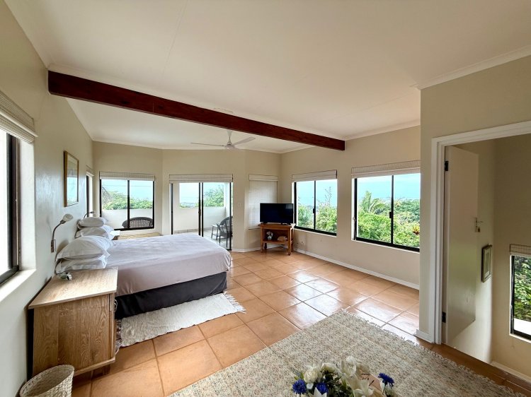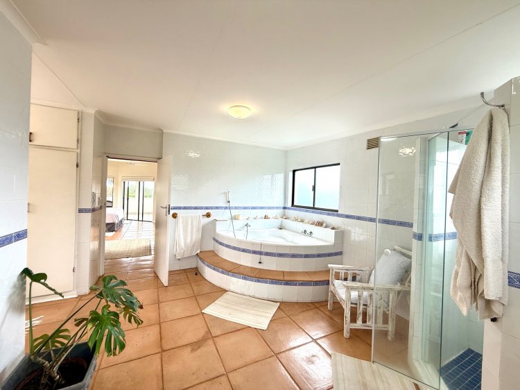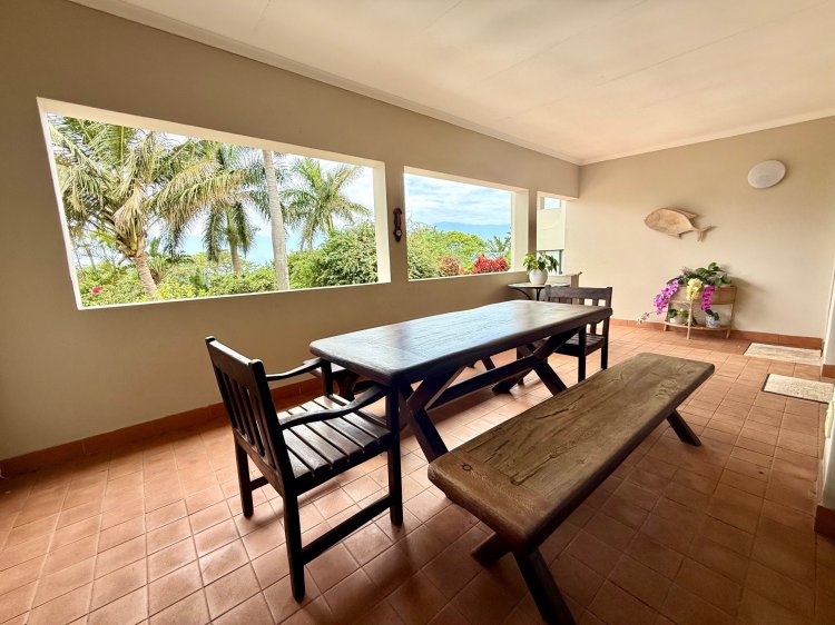 This beautifully designed home offers both comfort and functionality, ideal as a family residence or a luxurious coastal retreat. Featuring 4 bedrooms and 4 bathrooms, the property also includes a separate guest flat or staff quarters for added versatility. The layout embraces the central entertainment area, complete with a swimming pool, flowing to an indoor patio lounge with a built-in bar or serving area. From here, the home extends to a spa-style zone with an indoor Jacuzzi, sauna, and bathroom, opening through sliding doors to a tranquil garden. The main bedroom suite is privately positioned upstairs and offers a spacious retreat with a covered patio boasting panoramic ocean views. The kitchen connects conveniently to both sides of the home, featuring a pantry and a separate outdoor laundry area. Additional features include double garages, double carport, and ample guest parking. The property is equipped with a water tank connected to the house, as well as solar panels and an inverter, enhancing energy efficiency. Designed for low-maintenance living, this home combines spacious luxury with the peaceful atmosphere of coastal life.