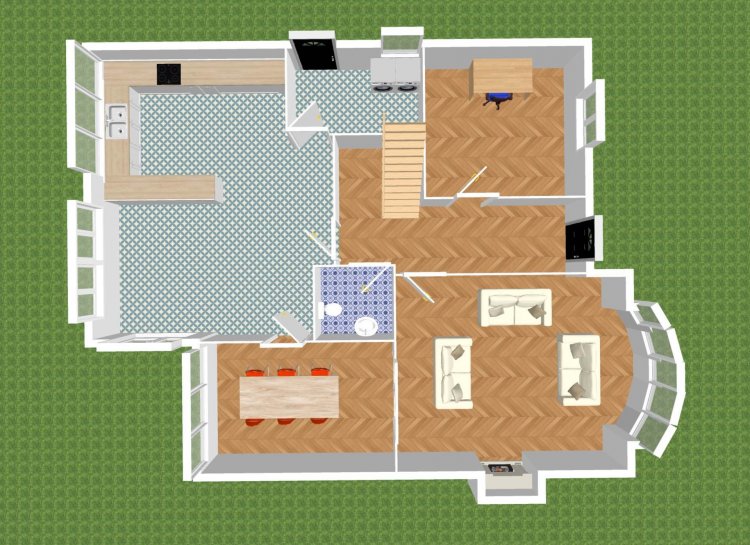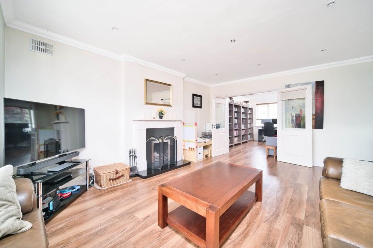 Family room 4.27m x 3.20m Semi-solid flooring, downlights, double doors to kitchen.