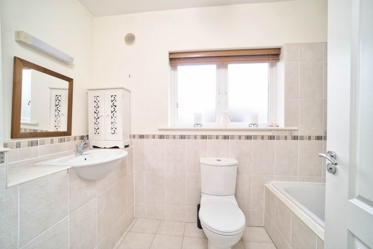 Bathroom 1.86 x 2.81m Tiled floor, semi-tiled wall, bath, w.c., w.h.b., towel radiator.