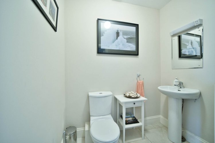Guest W.C. 1.70m x 1.98m Tiled floor, w.c., w.h.b., shaving light, extractor fan.