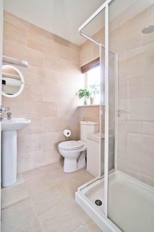 En-suite 2.97m x 1.82m Fully tiled, shower enclosure, power shower, w.c., w.h.b., fitted mirror, shaving light, towel radiator.