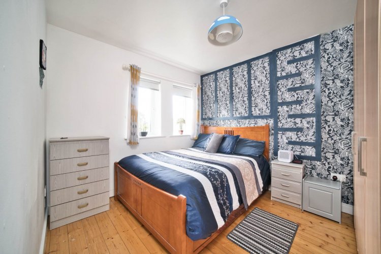 Bedroom 3 3.57m x 2.43m T & G wood flooring, fitted wardrobes, curtains, blinds and light fittings.