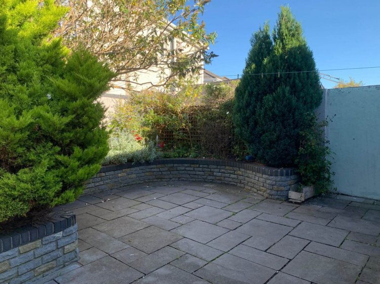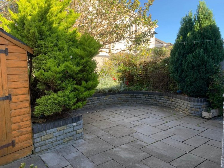 Garden 7.3m x 8.5m North west facing with full patio garden, raised flower beds and barna shed.