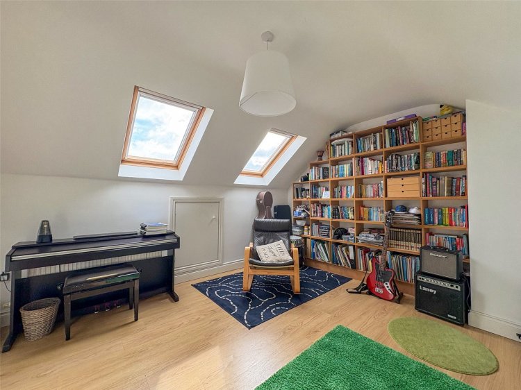 Upstairs is arranged between three large bedrooms, the main bedroom benefitting from its own en-suite, and a main family bathroom, as well as a walk-up attic space perfect for ease-of-access storage, spacious rec room & potential for a variety of uses.