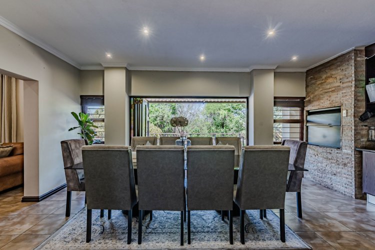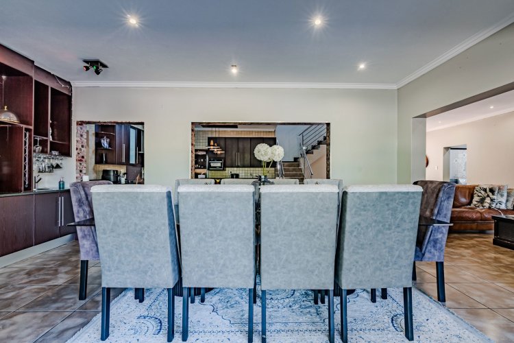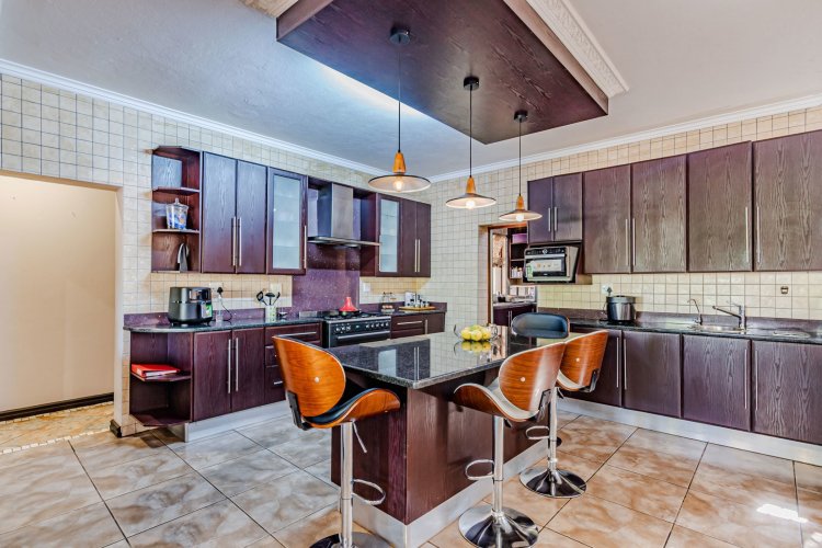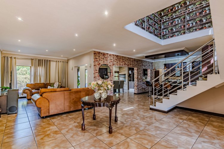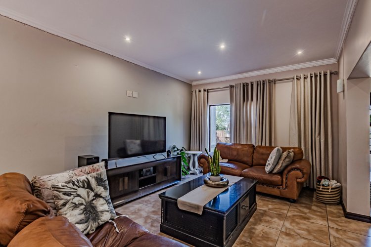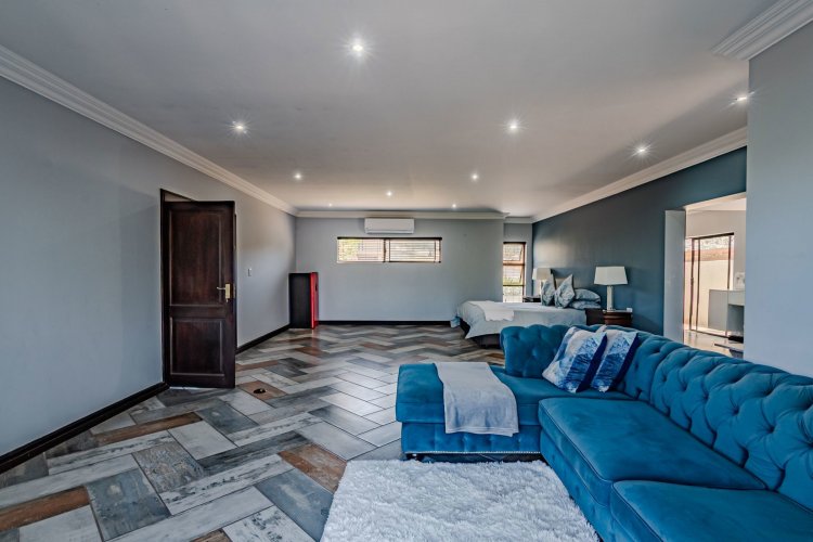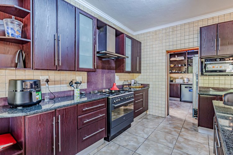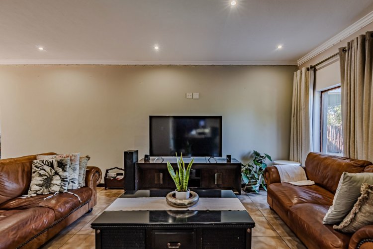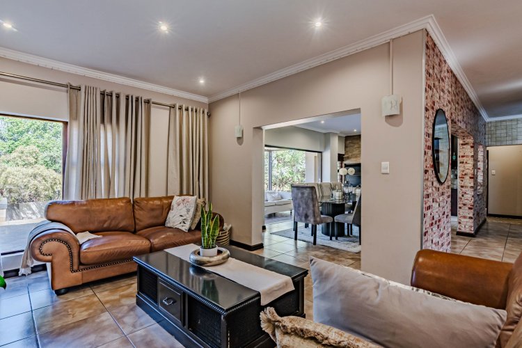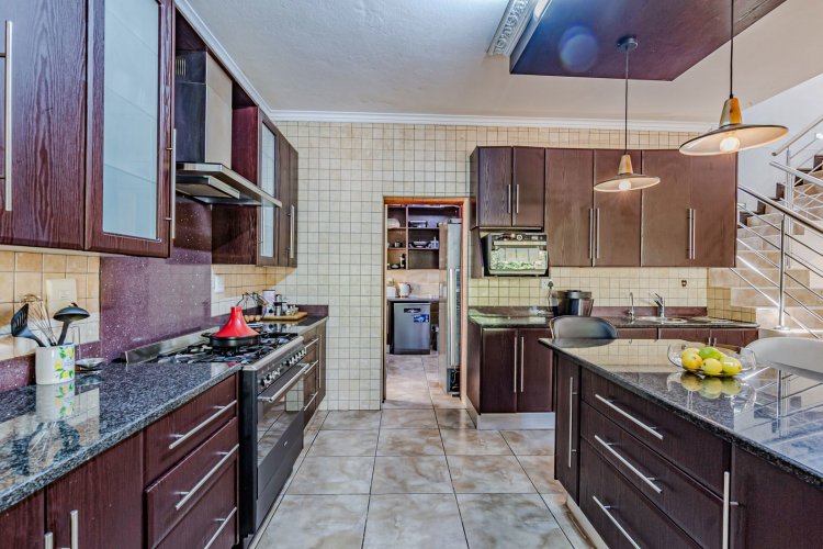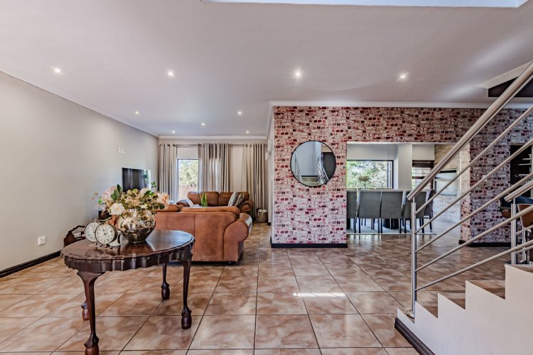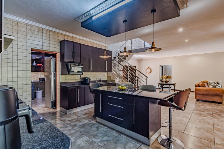 The home boasts multiple living areas, including a cozy pajama lounge, a spacious TV lounge, and an open-plan kitchen that flows seamlessly into the main lounge and dining area-perfect for family living and entertaining. The kitchen is complemented by a separate scullery and laundry room for added convenience.