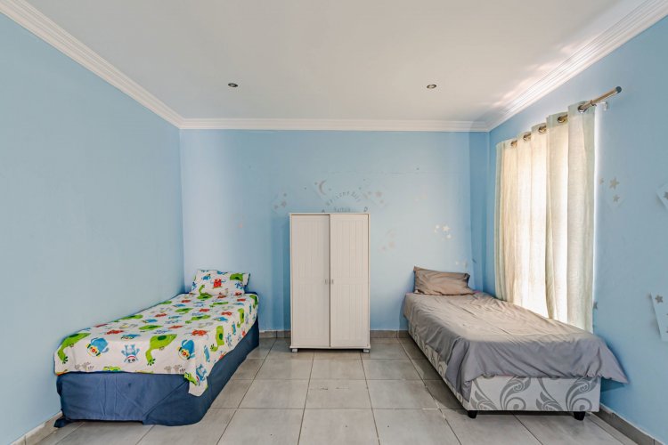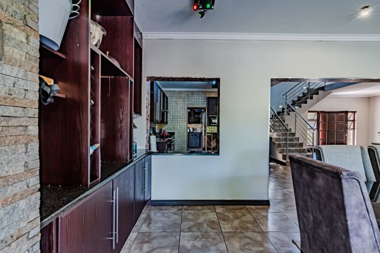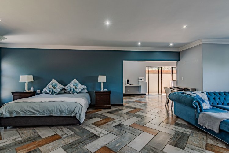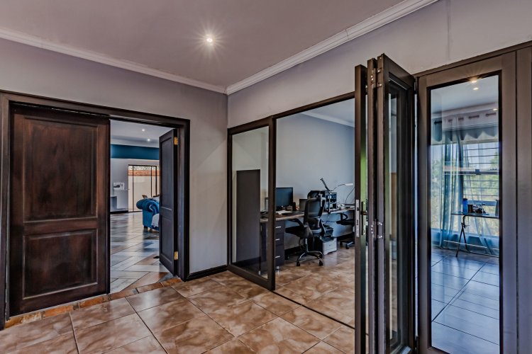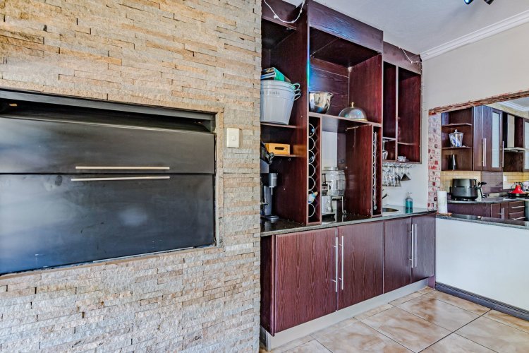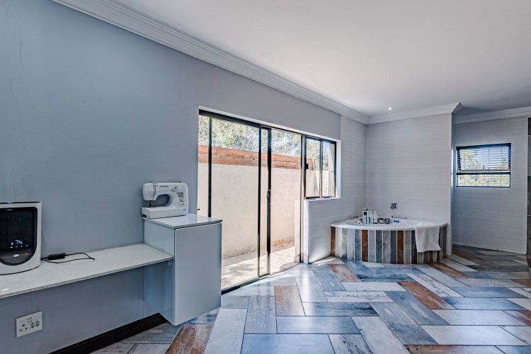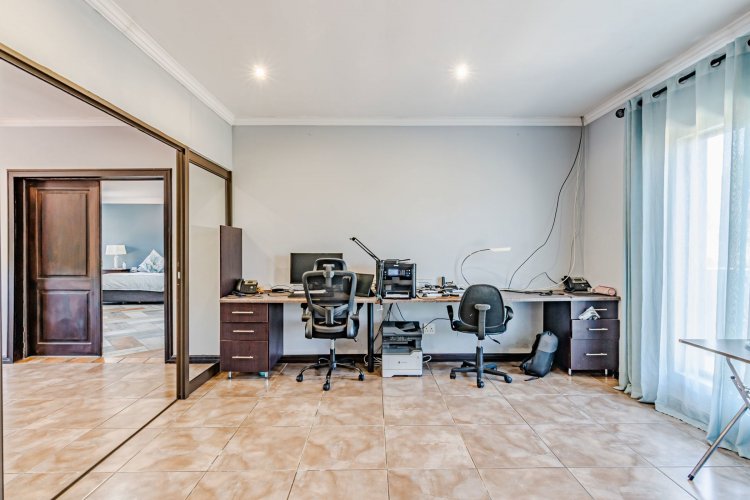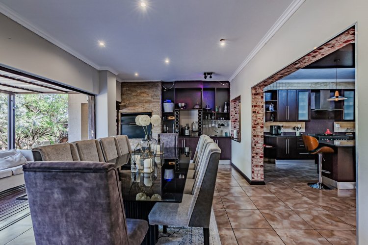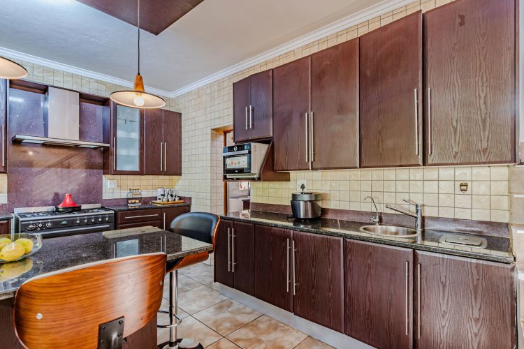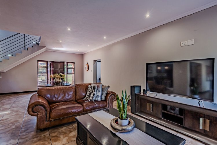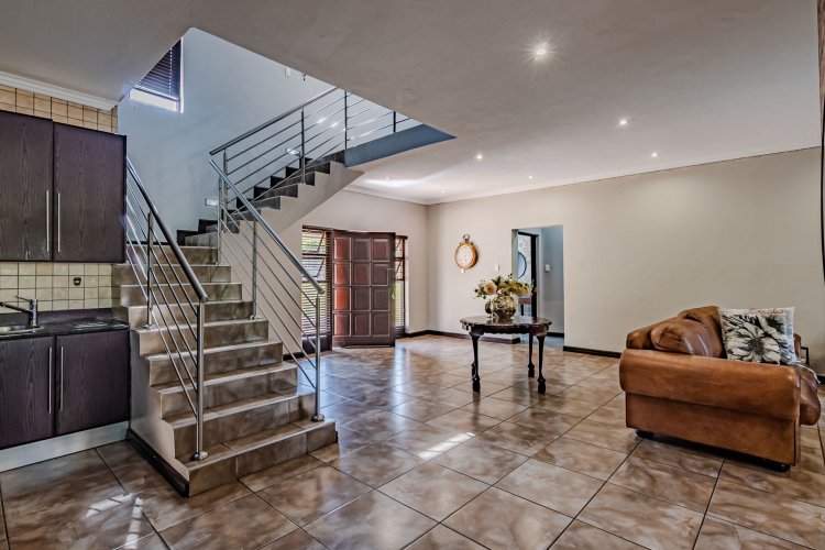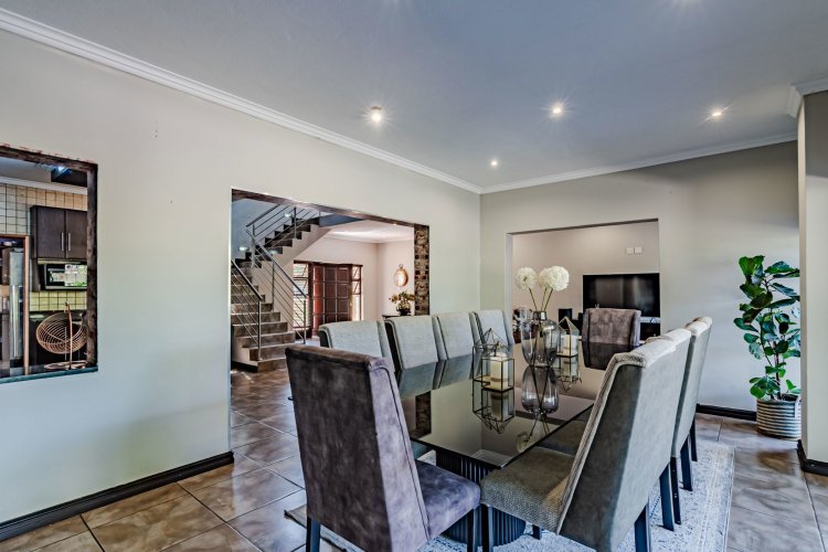 The home boasts multiple living areas, including a cozy pajama lounge, a spacious TV lounge, and an open-plan kitchen that flows seamlessly into the main lounge and dining area-perfect for family living and entertaining. The kitchen is complemented by a separate scullery and laundry room for added convenience.