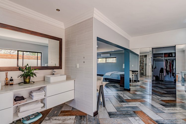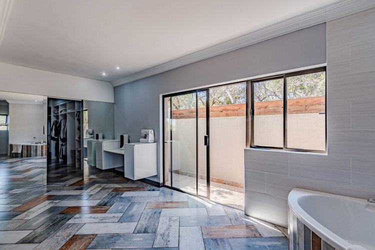 Step outside to a covered outdoor lounge area, ideal for relaxing or hosting guests, complete with built-in pizza oven, a boma firepit, and a sparkling swimming pool with a floating fountain -all set against the backdrop of a beautifully landscaped garden.