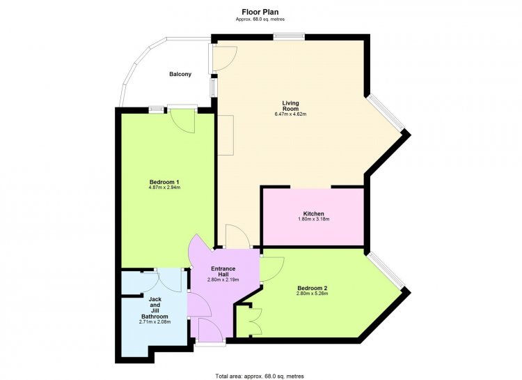 Accommodation briefly comprises: an inviting entrance hall leading to a generous living/dining room with direct access to a private balcony. The kitchen is set just off the living space and is well proportioned. There are two double bedrooms, including a principal bedroom with access to the Jack and Jill bathroom. The second bedroom also enjoys generous proportions and a pleasant outlook.