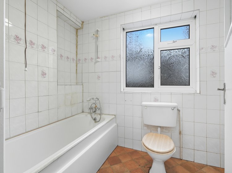 Finished with vinyl flooring and has WC, WHB and bath with Triton electric shower fitted over. This bathroom requires modernisation. |