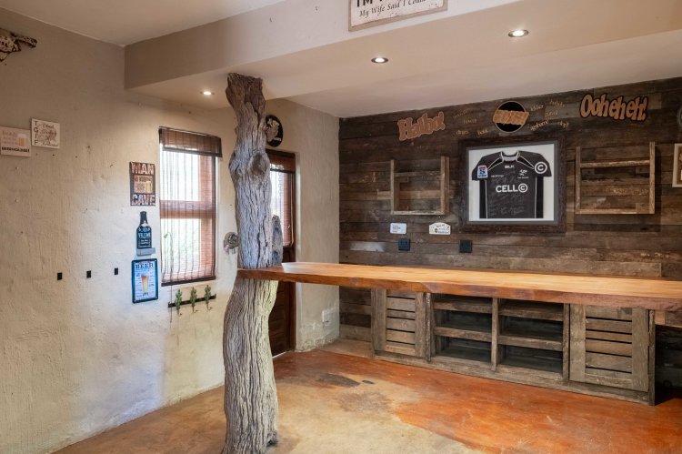 Featuring four generously sized ensuite bedrooms, two inviting lounges complete with fireplaces, a study and a welcoming pub area, this residence is designed for both comfort and entertaining. The open plan kitchen is perfect for family meals or hosting guests. Step outside to a sweeping entertainment patio, where built-in braai facilities and a projector make every gathering an experience to remember. The feature pool and landscaped indigenous gardens offer a tranquil outdoor retreat.