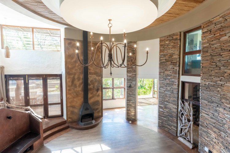 Discover the charm and sophistication of this remarkable home, a property where rustic elegance meets modern luxury, inspired by the essence of the African wilderness. From its striking hand carved West African doors to the thoughtfully curated interiors, this home is brimming with character and style.
