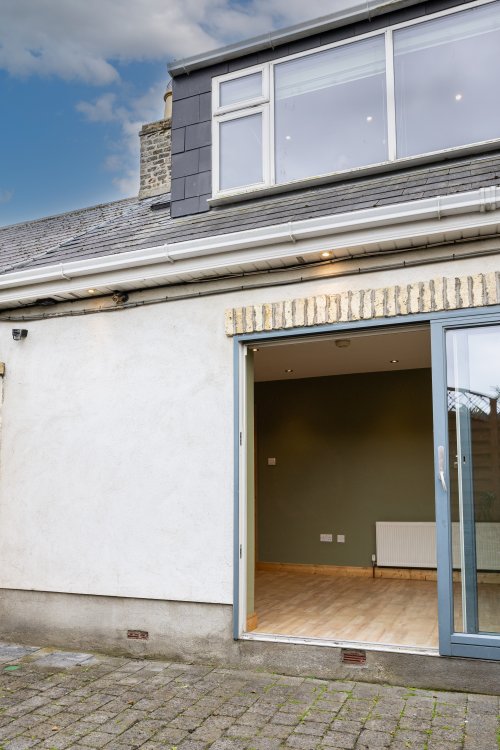The works carried out at that time were thoughtful and comprehensive, including the full reconstruction of the front portion of the house with insulated concrete floors, the addition of a new roof and dormer, and the installation of Norwegian windows and doors throughout. The front door, originally positioned at the rear of the property facing the railway, was relocated to its current position as part of this reconfiguration, which successfully reshaped the home’s layout and improved both flow and functionality.