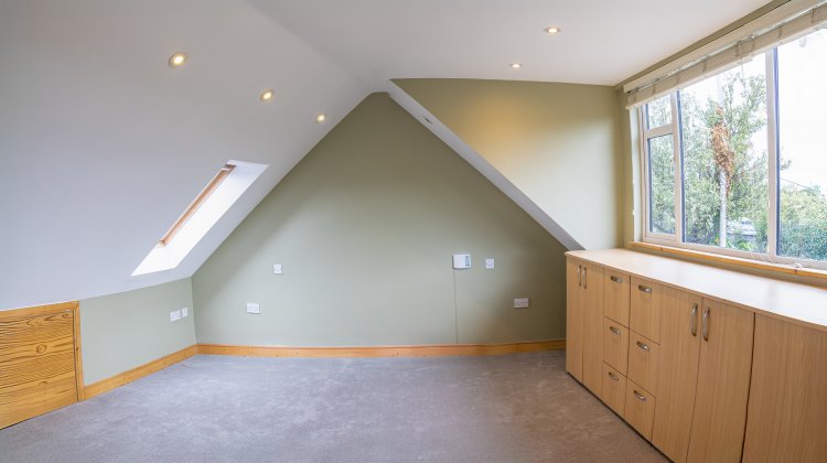 Upstairs, the dormer conversion has been thoughtfully carried out, creating a bright attic-style bedroom with a wall-to-wall window overlooking the rear, drawing in natural light throughout the day. Fitted storage has been neatly integrated, while a separate WC with wash hand basin adds a practical touch, removing the need for trips downstairs to the main bathroom during the night.