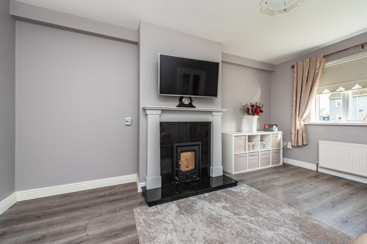 On entering the house you have an entrance hall leading to sittingroom with stove and double doors opening to livingroom/diningroom, off this is the fitted kitchen. Upstairs there are 3 generous bedrooms and bathroom. Outside there is a cobble loc drive, side access with gate to rear garden in lawn with garden shed.