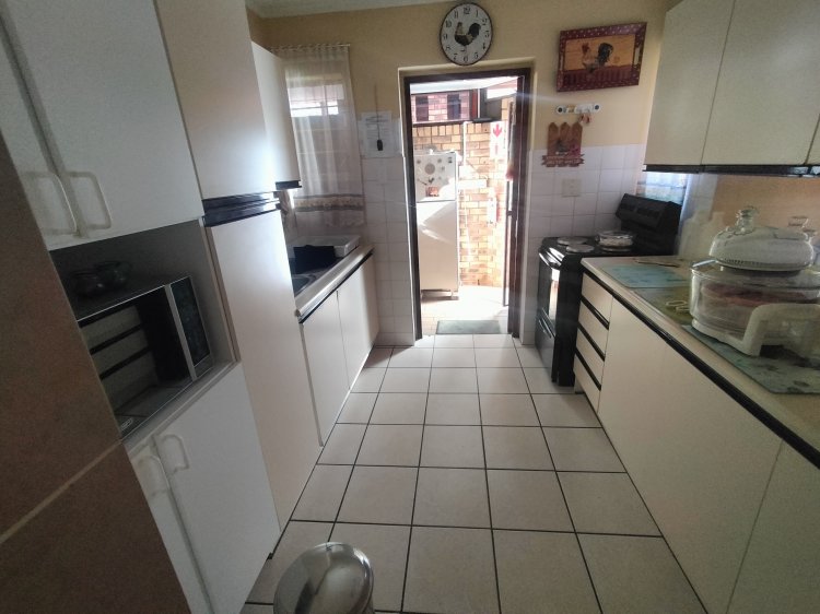 This charming 2-bedroom, 2-bathroom retirement unit in Amandasig Retirement Village offers comfort, convenience, and peace of mind. The home features an open-plan lounge and dining area with a neat retro kitchen boasting ample cupboard space. A rear enclosed patio serves as a laundry with extra cupboards, while a covered front patio provides the perfect spot to relax. The unit is fully tiled, move-in ready, and includes a single automated garage, a neat garden, and added security with Spanish bars on all windows. As a corner unit, it enjoys privacy with guest parking conveniently nearby.