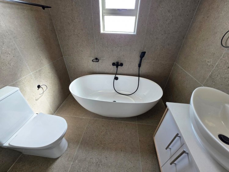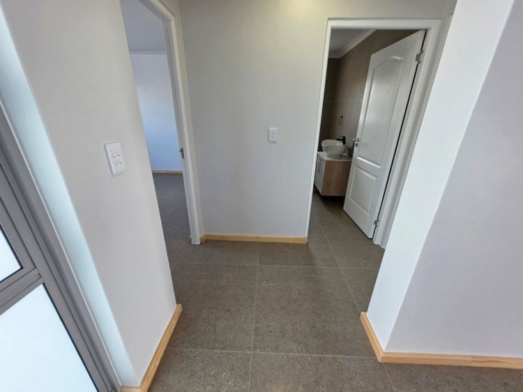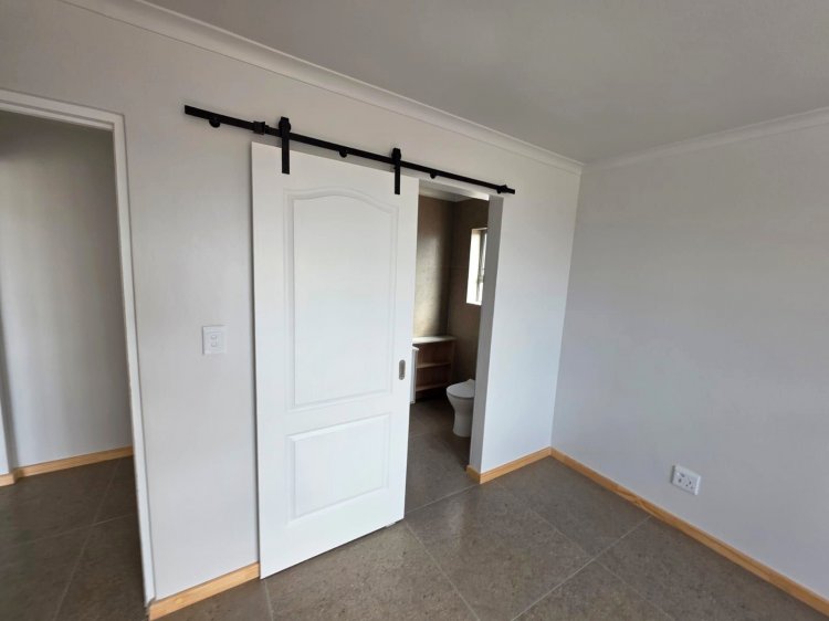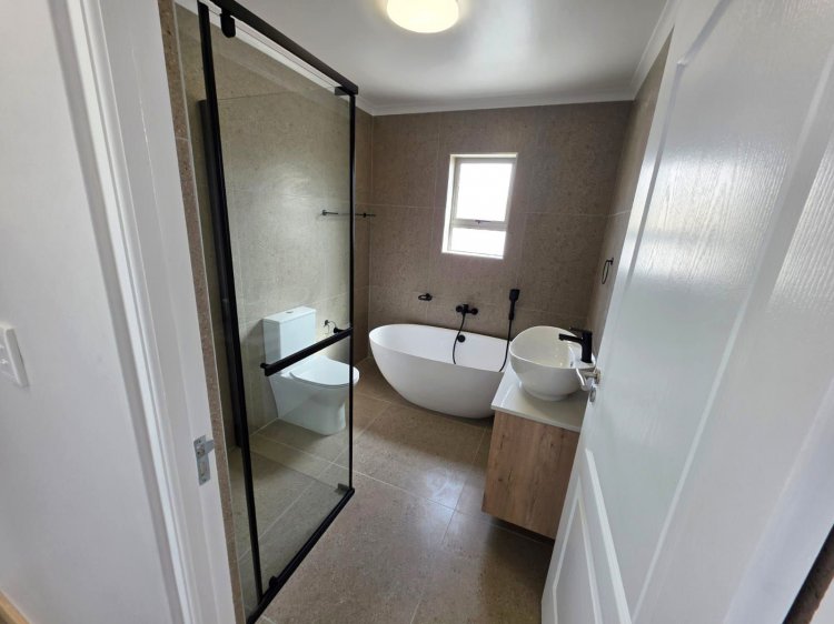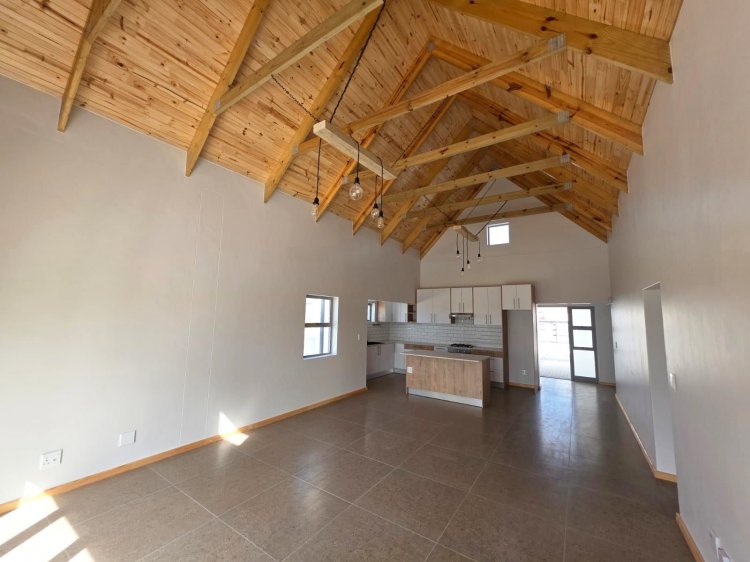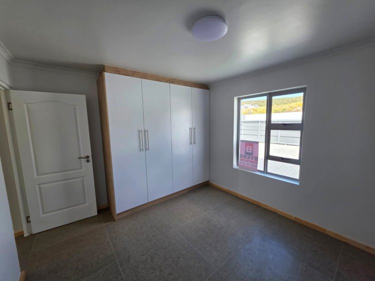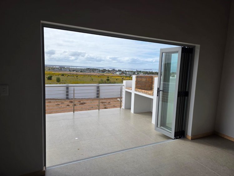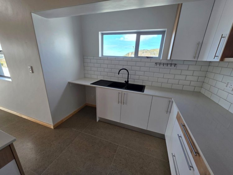 This brand new and master-built home with uninterrupted views towards the bay from well positioned and ideally elevated Welgedaan Estate in Saldanha Heights opens from a secure and gated frontage to a tiled entrance with flow to a spacious and open plan kitchen and living room with trendy exposed trusses with the resultant double volume benefit and feel. The kitchen boasts ample built in cupboards, engineered stone tops, fitted oven/gas hob/extractor fan, convenient breakfast nook and well appointed and tiled "splash-back" finishing. This open plan living area opens via a cascading / stack door to a uncovered braai patio with breathtaking views towards Saldanha Bay, Langebaan in the backdrop and Saldanha harbour. The stairs from the patio leads to the rear and walled back garden area. The 3 bedrooms are also conveniently tiled, offer ample built in cupboards and the master bedroom has a " tiled to top" en-suite bathroom with a shower, toilet and a washbasin (Quality finishes throughout) The " tiled to top" family bathroom is a full bathroom. The automated double garage offers convenient direct access to the house, houses the geyser-wise control panel and geyser and also provides a door to the rear. 2X PVR panels for the Geyser-Wise control and heating system Fibre ready