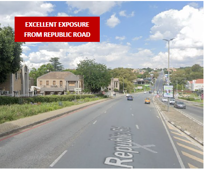 Situated in the larger Randburg area, Ferndale is known for its blend of commercial, residential, and recreational spaces. The property is positioned along Republic Road, a major arterial route that provides easy access to surrounding areas and key destinations.