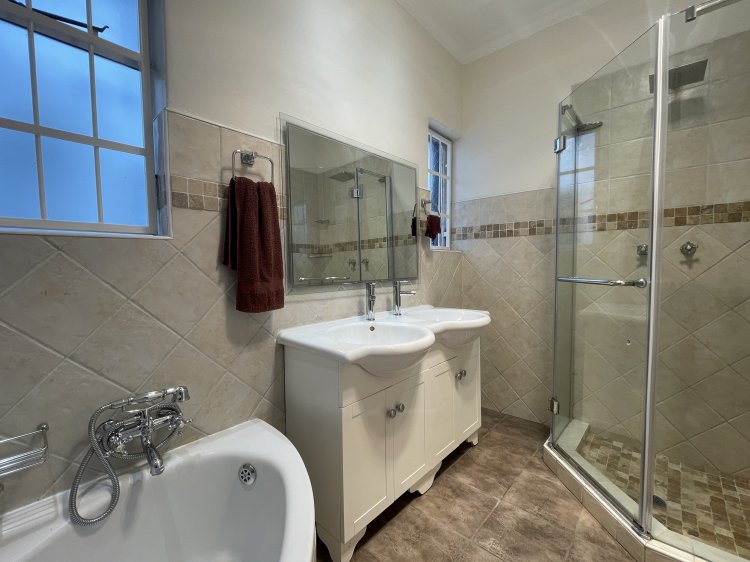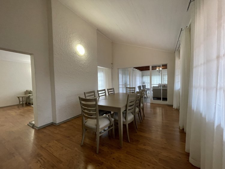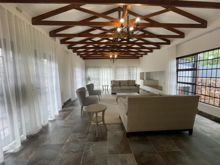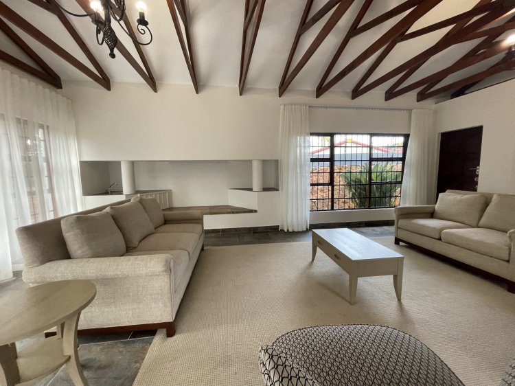Perfect family home, this spacious very security orientated home provides ample outdoor space for children to enjoy all sorts of sports. Featuring: -An open-plan kitchen with a scullery and pantry, flowing into the lounge and dining room. -The entertainment area is covered and can be accessed from a separate outside entrance located near the main entrance. -Three secure bedrooms are located together. The layout includes two bedrooms that share a full bathroom and a dedicated master suite with a full en-suite bathroom. -The upper (and only) level features a guest bedroom with an en-suite bathroom that includes a bath only. -The two study rooms have been separated but offer the flexibility to be opened again. -An extra outdoor room with a separate shower/bathroom. A must-see property! The security on this property is of diplomatic standards. It will ensure you and your family feel safe and sound.