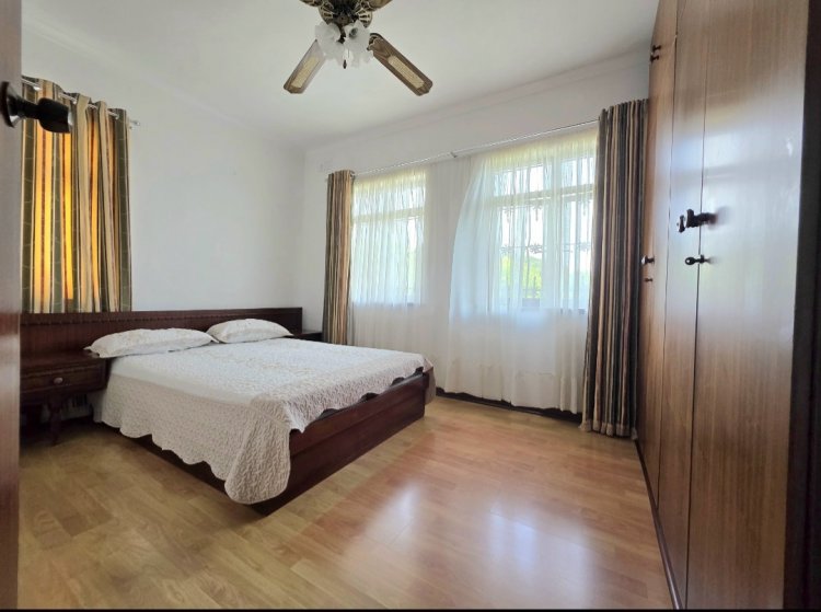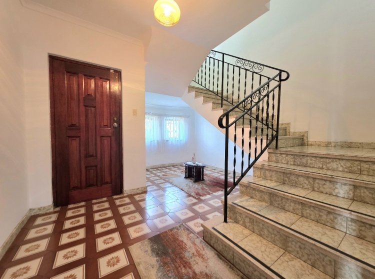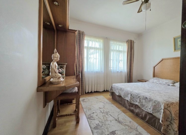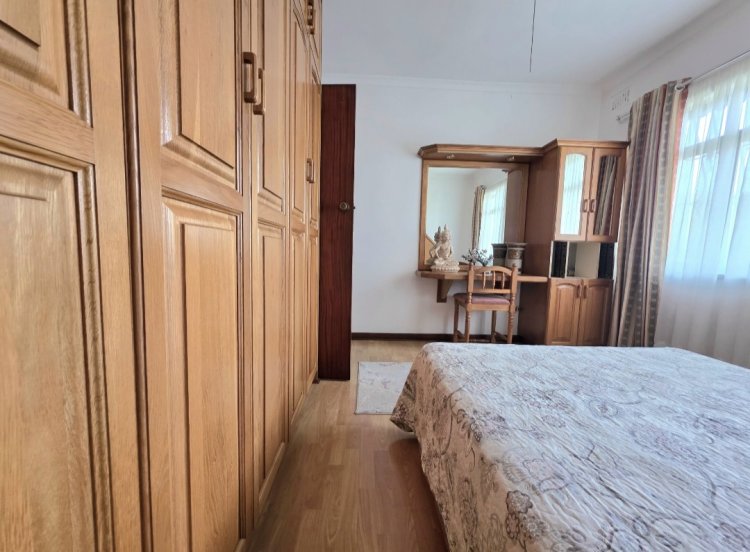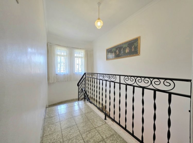 Moving upstairs, the home showcases three generously sized bedrooms with built-in cupboards. This level also includes a separate dining room and a welcoming lounge that opens onto a lovely balcony, providing sweeping views.
