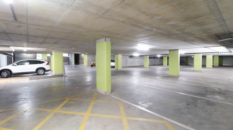 The building has two passenger elevators and three internal staircases, making movement between floors easy. The restrooms are high-quality, and centralized air conditioning ensures comfort throughout. The property prioritizes security with an alarm system and CCTV monitoring. The four levels of covered parking offer plenty of space for tenants and visitors.