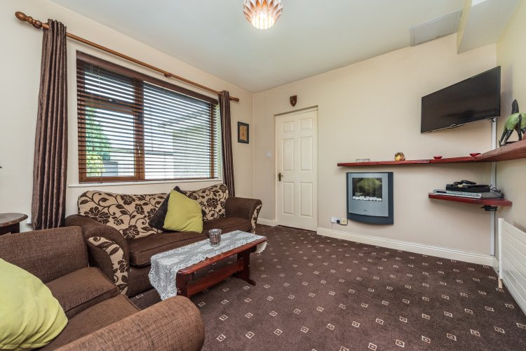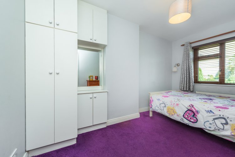 The ground floor also includes a convenient bathroom and an integrated garage with electricity, ready for conversion to suit your needs. Upstairs, there are four bedrooms with built-in storage ? two spacious doubles and two singles ? alongside a fully tiled family bathroom with bath and electric shower. Additional storage is provided by a shelved hot press.