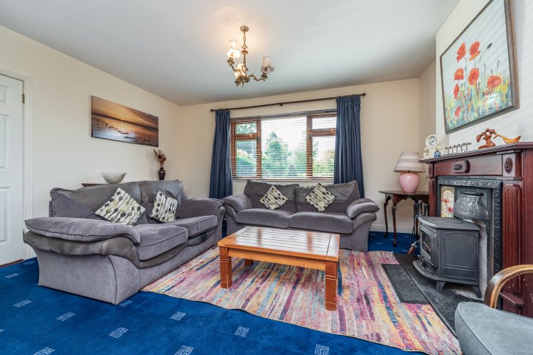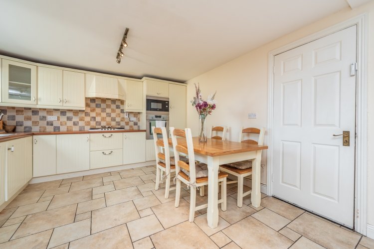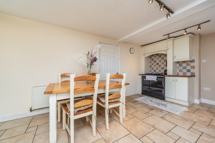 This spacious home offers well-designed living areas perfect for family life and entertaining. The bright entrance hall welcomes you inside, leading to a cosy sitting room featuring a charming fireplace with a solid fuel stove. Adjacent is the generous dining room, ideal for hosting meals and gatherings. A comfortable TV room provides a relaxed space with an electric wall-mounted fire, while the kitchen/dining area boasts quality fitted units, a Stanley cooker, gas hob, integrated appliances, and tiled floors and splashbacks. The utility room offers practical laundry facilities and garden access.
