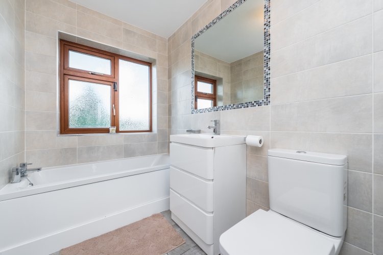 fully tiled, bath, electric shower, w.c., w.h.b. |