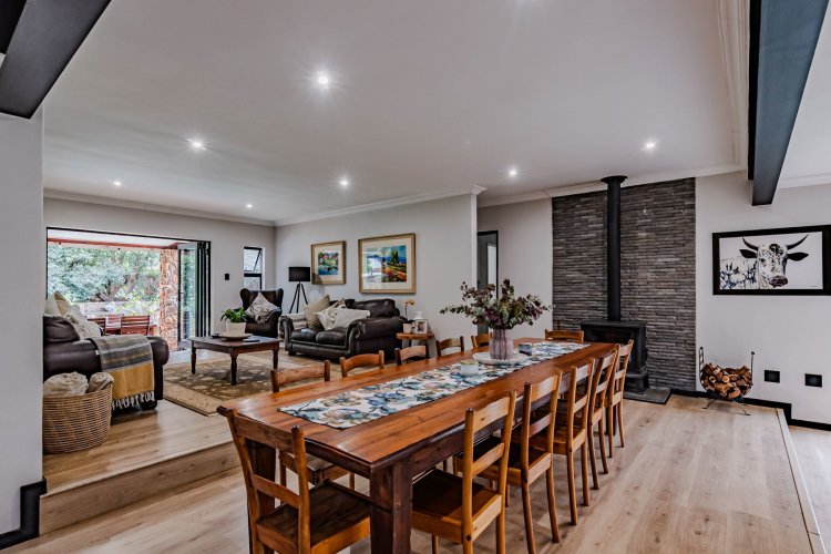 Additional Features include: - 14 Solar Panels, 7Kva Inverter & 2 x 5KWA Batteries - Aluminium windows and doors (4 windows wood) - Staff accommodation - Double Garage - Combustion Wood Fireplace - Undercover wood braai - Swimming Pool - 1 Geyser - Fibre & Wifi Router - Prepaid electricity - Boma - Garden Shed - Storage area - Work area inside Garage - Wendy House