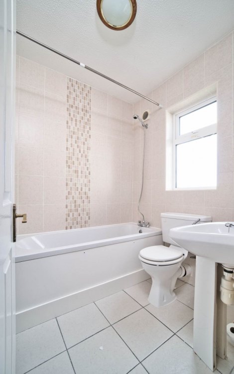 Bathroom 1.83m x 1.81m Fully tiled, bath, with shower curtain, w.c.,w .h.b. and light fitting.