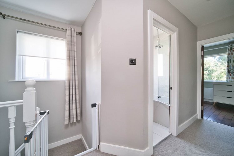 Landing Down lights, carpet, attic access with built in ladder and additional insulation.