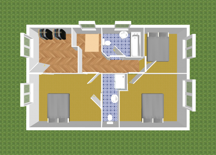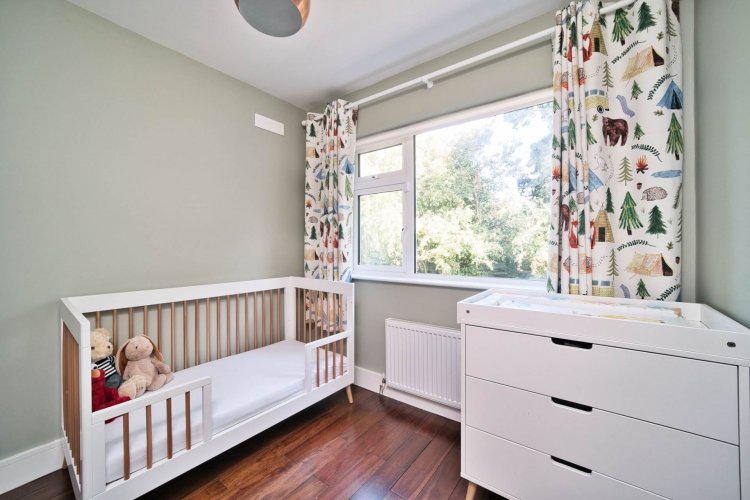Bedroom 3 2.93m x 2.6m Blinds, solid walnut floor and Denta solid walnut veneer doors.