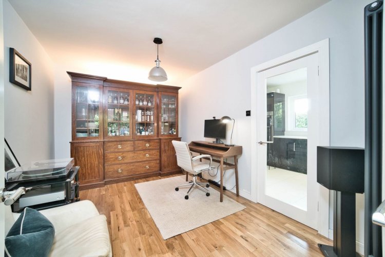 Office 3.87m x 2.84m Double French doors to dining room, Junkers solid oak wooden floor and anthracite grey vertical radiators.