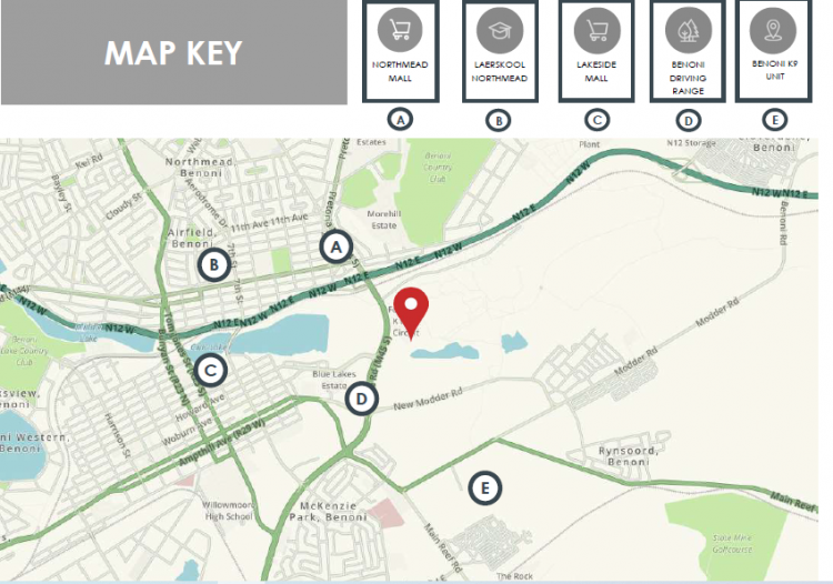 Nearby amenities include local schools, shopping centres, and medical facilities, while the surrounding road network ensures easy connectivity to the Benoni CBD and neighbouring suburbs.