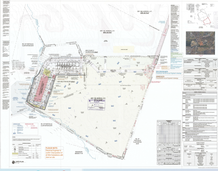 The subject property boasts a combined erf extent of 34,912m², which has a proposed division into 7 different sites and an additional security guard house. Each site has been approved for the development of light industrial boxes which are suited for storage, office and warehouse use.