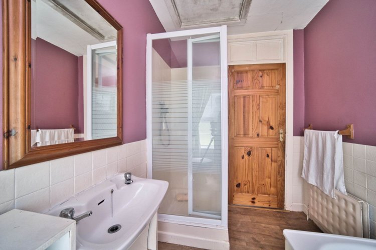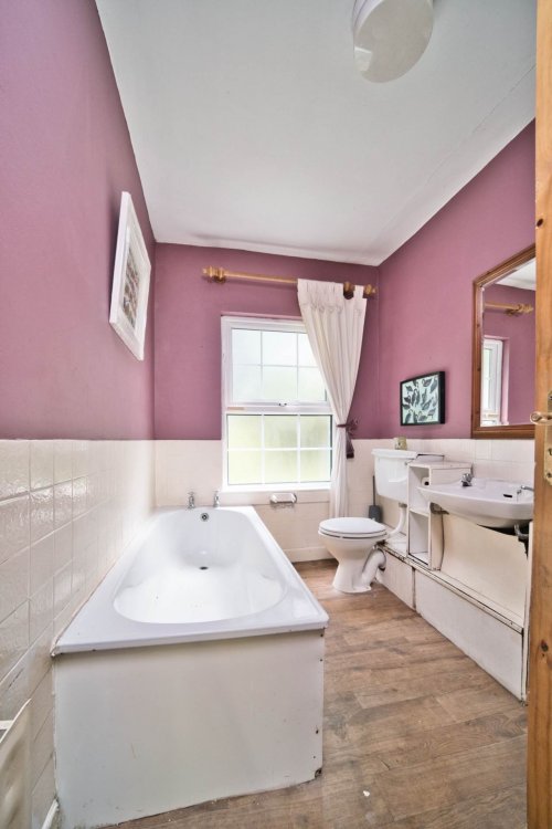 Bathroom 2.87m x 1.83m Lino floooring cover, bath, shower cubicle, w.c., w.h.b.
