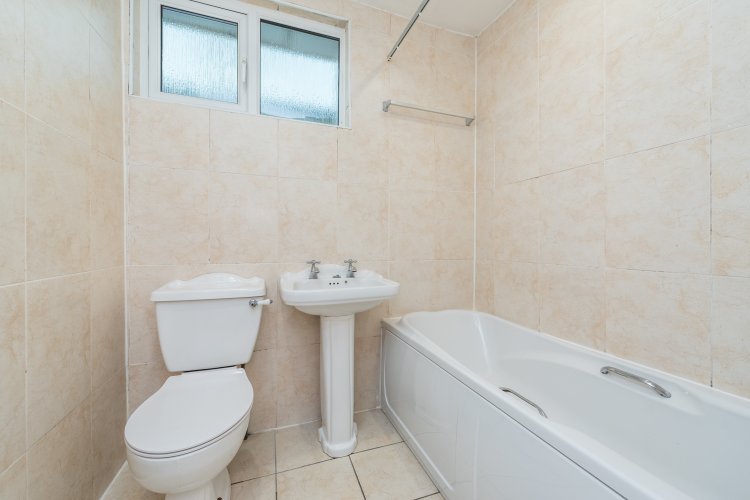 Fully tiled, w.c., w.h.b., recess lighting, bath attachment, electric shower over. |