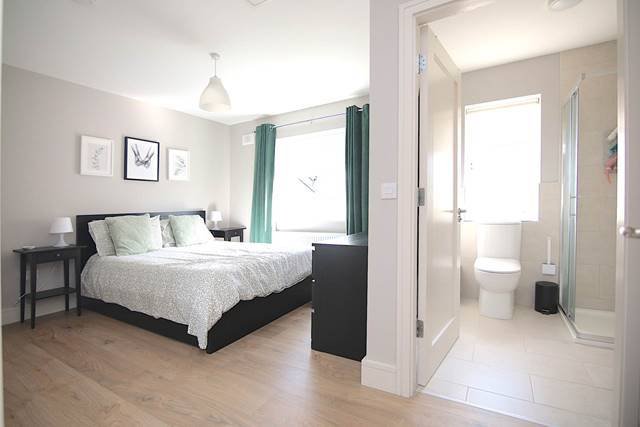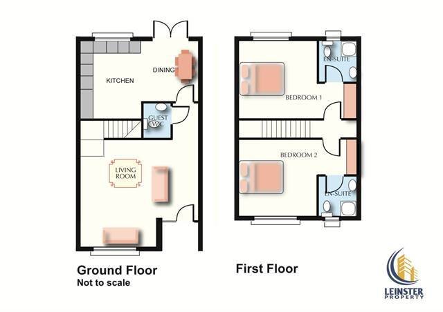 39 The Drive in Ledwill Park offers a home in turn key condition. This bright and spacious 2 bed home provides all modern comforts and offers an energy efficient home in a lovely residential area overlooking a large open green space., The property is well positioned close to excellent public transport including nearby Kilcock train station and bus service. The Royal Canal and Greenway offers a fantastic amenity as well as a traffic free cycle route to nearby Maynooth University and Town. Kilcock provides ease of access to Dublin airport via nearby M4 motorway and Dublin city, including access to surrounding counties and the West of Ireland., The town of Kilcock offers a great selection of primary schools, a secondary school, and there are several creches also. Local shopping, including cafes and cosy pubs are only a short stroll away., Ledwill Park is a modern residential estate with a nice community and number 39 The Drive is sure to attract good interest, with only a small number of properties only ever available in this relatively new development., The accommodation in brief consists of:, Living Room: 5.04m x 4.28m with wood laminate flooring, Kitchen/Dining: 5.08m x 3.48m with wall and floor units, tiled splashback, laminate flooring, a dining area and recessed lighting, double French doors to rear garden, Guest W.C.: with whb and wc, tiled floor and splashback, Upstairs:, Bedroom 1: 3.53m x 3.21m Spacious double bedroom with wood laminate flooring, built in wardrobes and a fully tiled ensuite., Bedroom 2: 3.41m x 3.21m Spacious double bedroom with wood laminate flooring, built in wardrobes and a fully tiled en-suite., Outside:, Front paved driveway with off street parking for two cars, Rear garden comes with a low maintenance artificial grass and there is a paved patio area ideal for evening Al Fresco dining., Features and additional details:, A2 BER Rated property, Built in 2021, Internal floor area c.85 sq,m ( 915 sq.ft), Modern interior in walk in condition, Wood floors fitted in living room and both bedrooms, Rear garden aspect South East Facing, Property has large side entrance, Paved front drive with parking for at least two cars, Property fully alarmed, Low maintenance exterior with rear garden fitted with astro turf artificial grass, Steel tech Garden Shed included, Central Heating - Heat Pump, Triple glazed windows, Stira stair case fitted in attic, Attic floored and comes with fitted electric light, Wired for alarm, Sky and Virgin media offering high speed fibre broadband available, Outside water tap & lights, Both bedrooms come with ensuite bathroom, Walking distance of town amenities including Kilcock train station, Contents included "Lights, carpets, all white goods", Please contact Leinster Property Sales Team today to register interest on 01 6284261 or check out our website www.leinsterproperty.ie where you can Bid 24/7 or request a viewing via Offr Button.