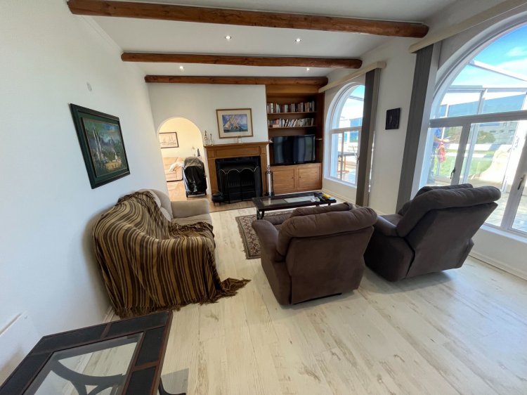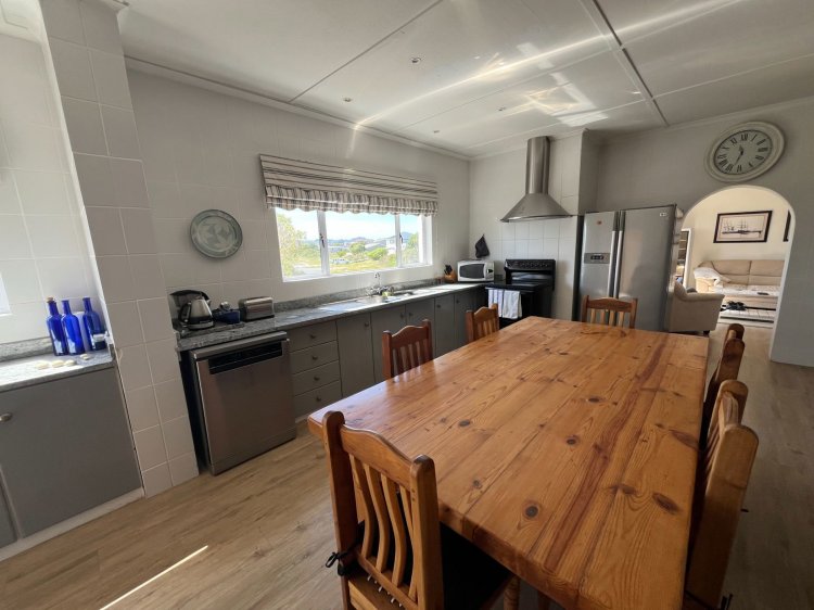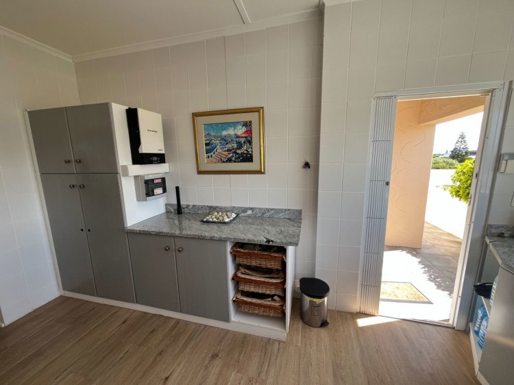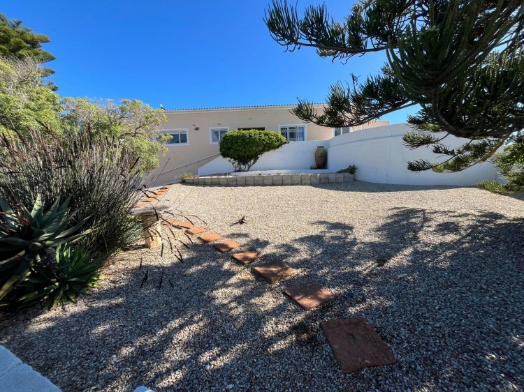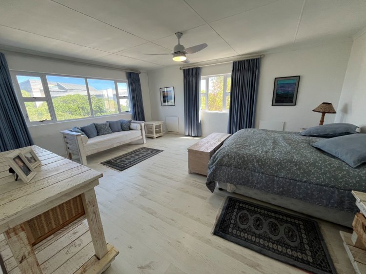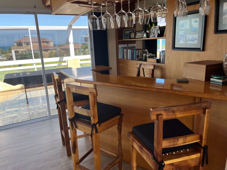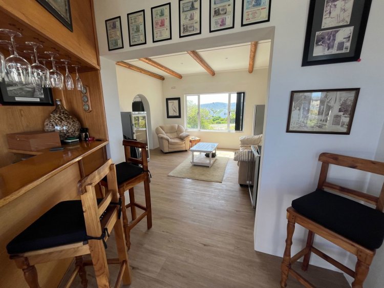 Wow, where can you find a seaside property of almost 2000m2 these days? Set high up, the property is a landmark in Harbour Road. This property is on a consolidated double corner stand and has sea views down Harbour Road and across the bay from the bar and TV lounge. Outside viewing pleasure is enhanced by having sliding windows and a retractable awning on the generous patio. The house is imposing, light, airy, spacious, comfortable to live in and full of character. The owner is busy updating the plans and the house is being sold furnished, so all you need to do is bring your clothes. There is an inverter that assists with load shedding. One of the garage doors is a little higher than normal for higher vehicles. The property comes with an engineer's report for extra peace of mind