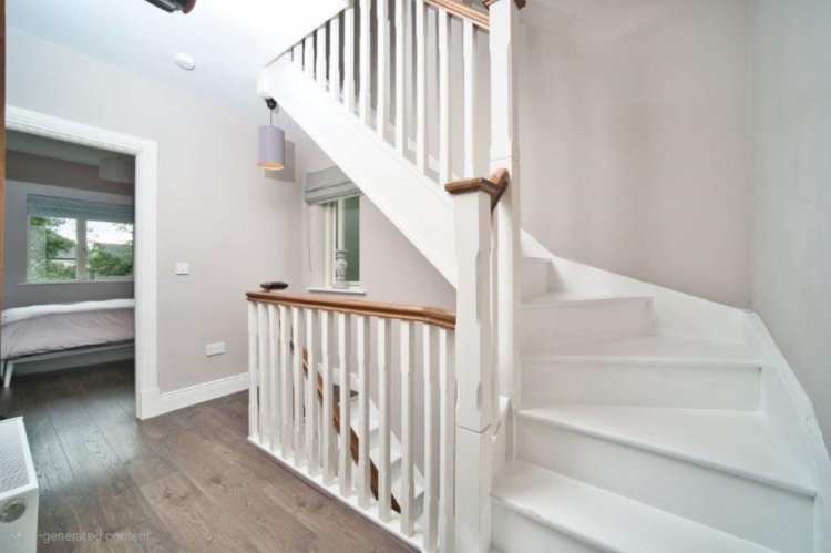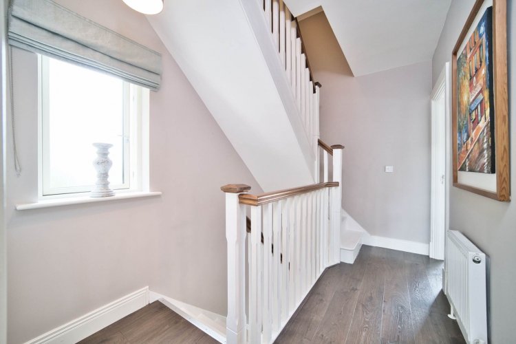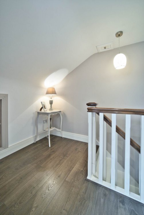 Landing (0.91m x 3.4m) + (3.28m x 1.1m) Stairwell to attic room, laminate floors, light fitting and hot-press.