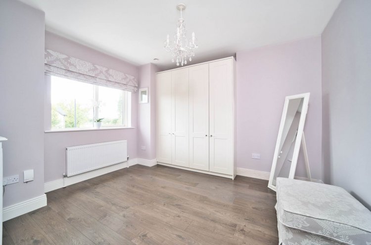 Bedroom 3 3.11m x 3m Laminate flooring, fitted wardrobes, light fitting and roman blinds.