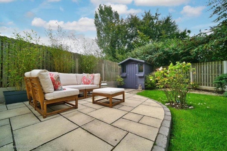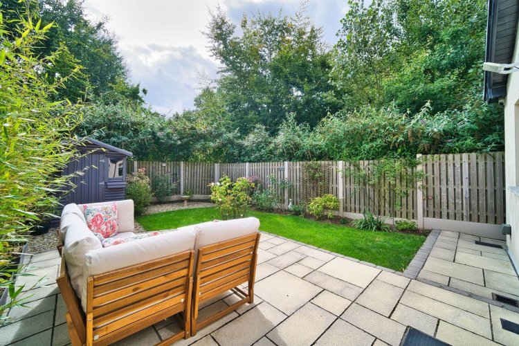 Garden West facing garden with patio and lawn area, mature plants and mature trees surrounding the rear garden.