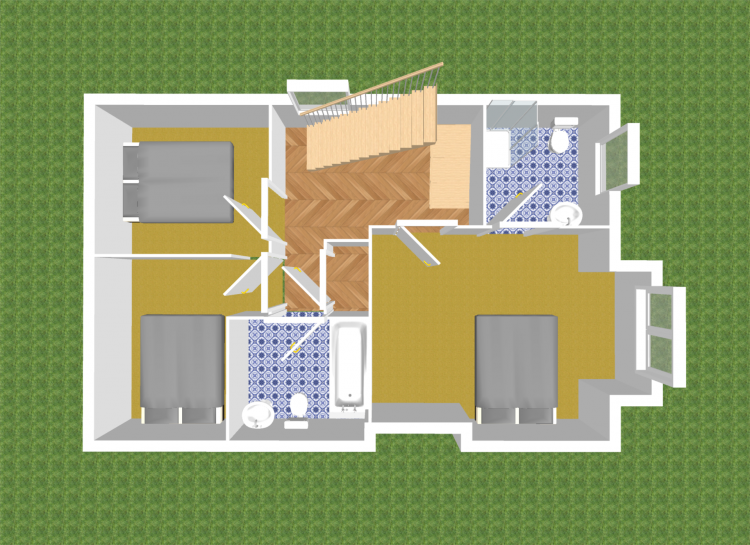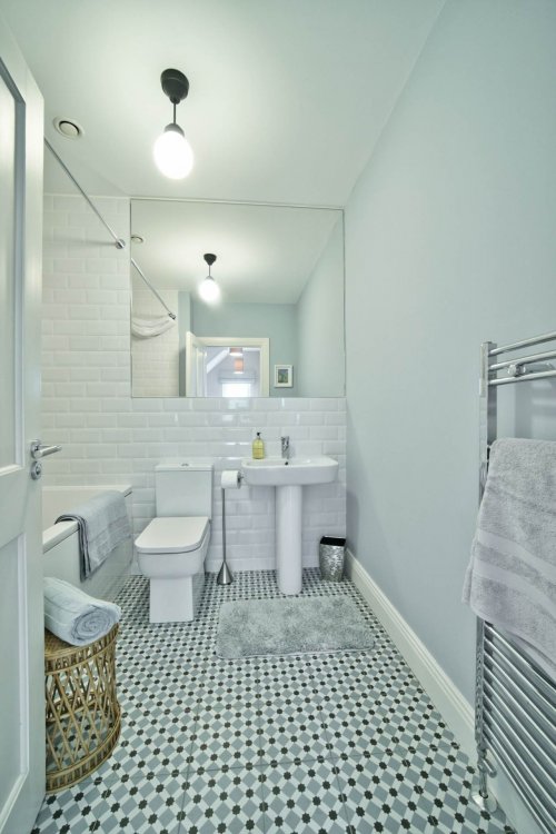 Bathroom 2.14m x 2.27m Fully tiled, extra large bath tub, w.c., w.h.b., fitted mirror, light fitting and extractor fan.