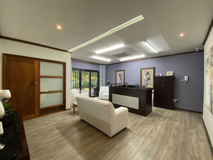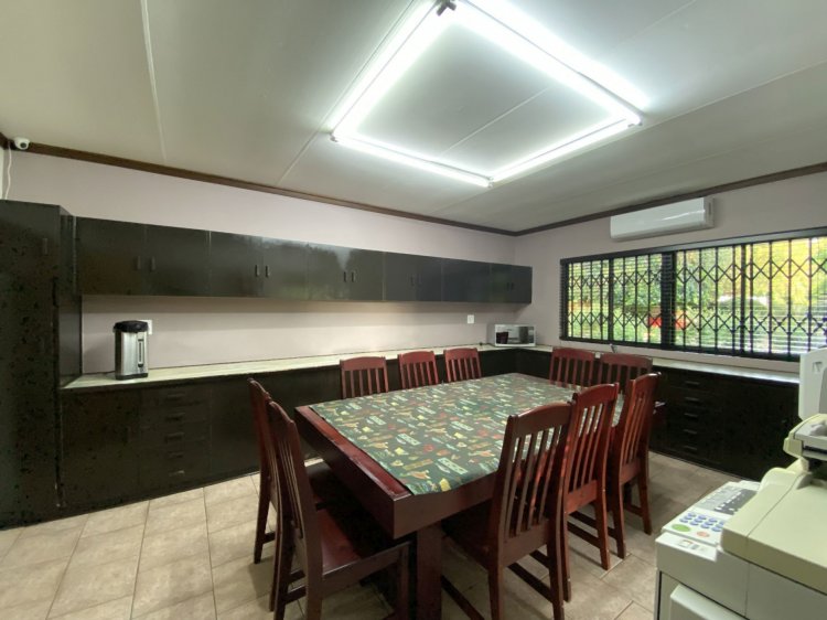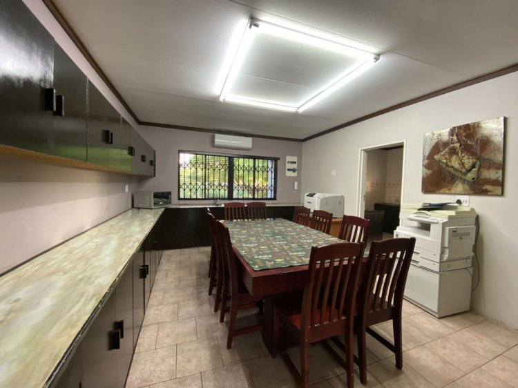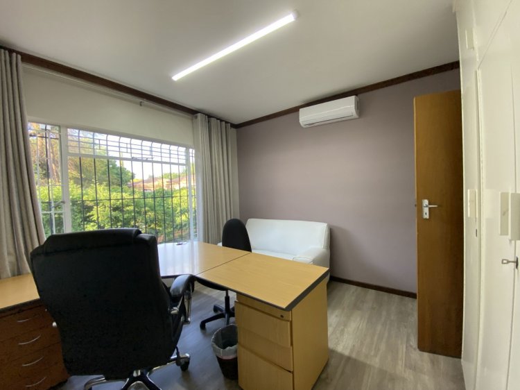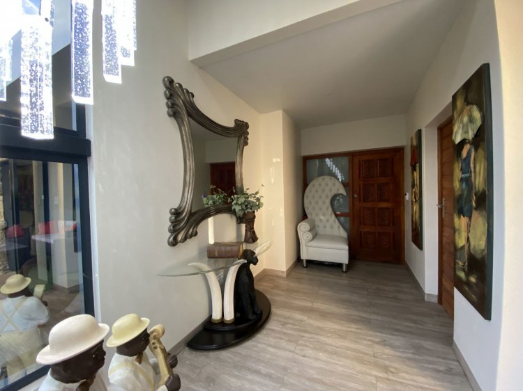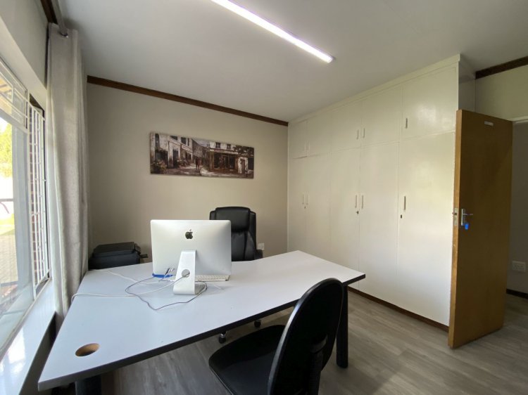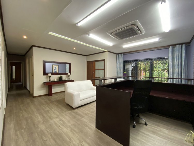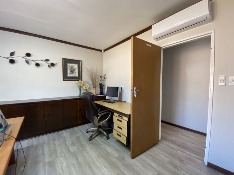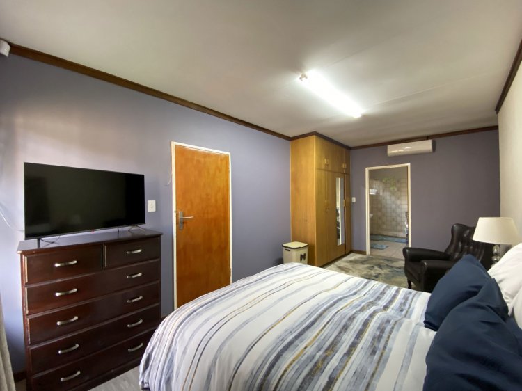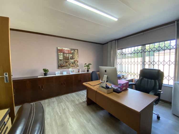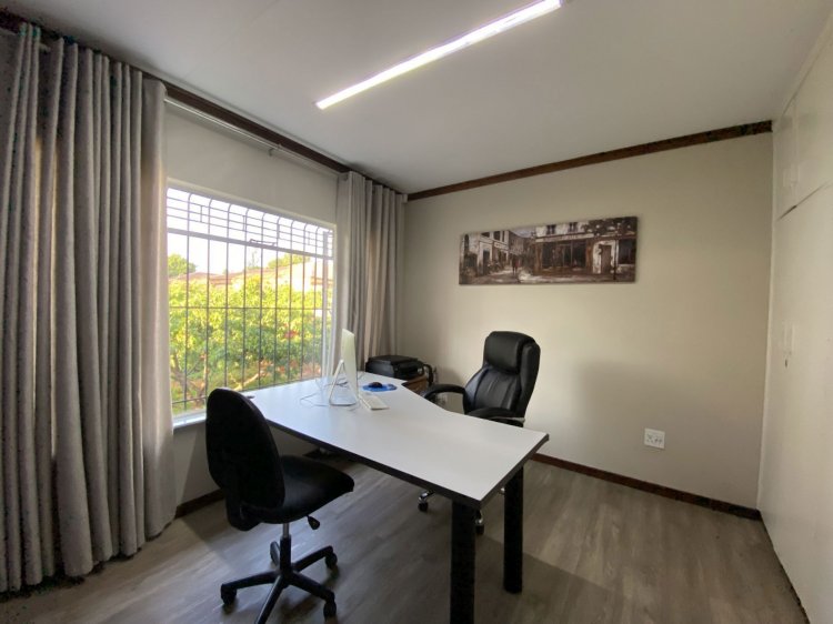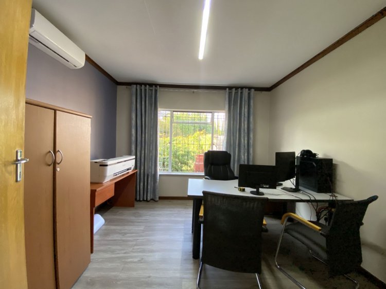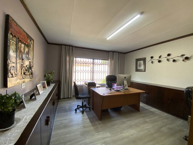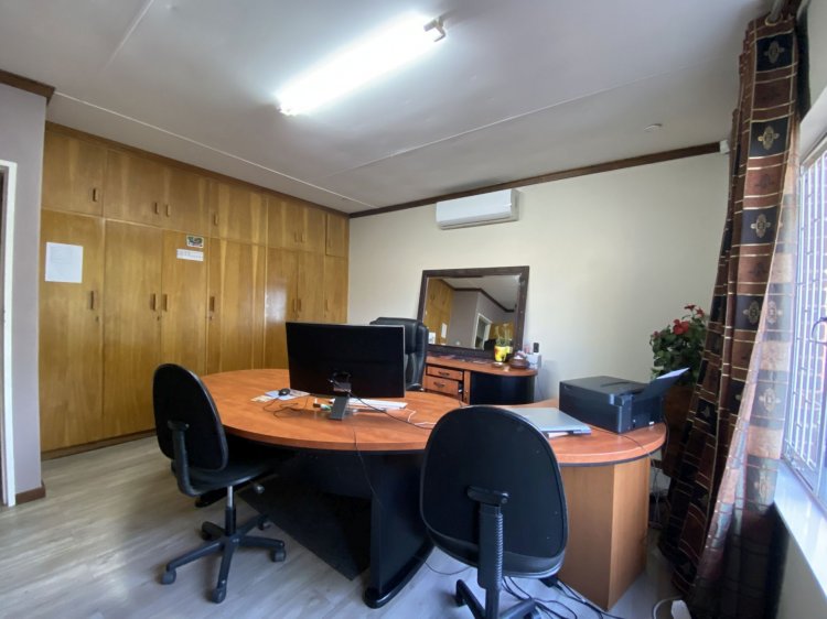 Situated on a prominent street in Langenhovenpark, this full-title property offers endless potential. Set on a generous 1193m² erf, it boasts 6 well-kept bedrooms (all with AC), 3.5 bathrooms, and a modern façade.