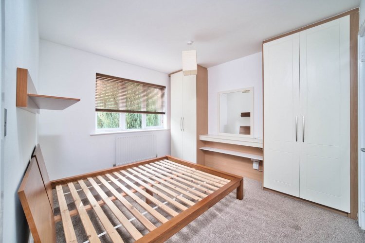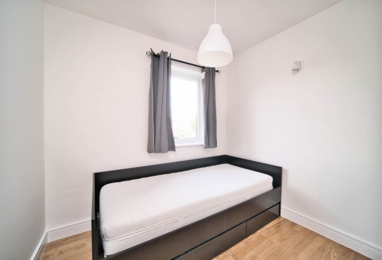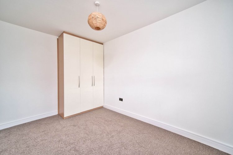 Bedroom 3 2.61m x 2.5m Laminate flooring, fitted wardrobe, light fitting, curtains and blinds.