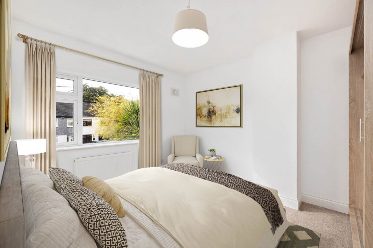 Master Bedroom 3.53m x 3.87m Carpet, fitted wardrobes and overlooks rear garden.