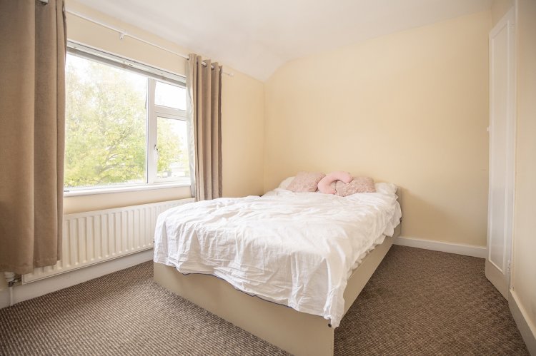 Moving to the first floor, the property features three generously sized double bedrooms, each of which is bright and airy thanks to large windows that let in plenty of natural light. The main bedroom, positioned to the front of the house, is finished in the same light cream tones and offers a comfortable and peaceful retreat. The two additional double bedrooms, located to the front and rear of the house, continue the theme of carpeted floors and a light, neutral colour palette that ensures each room feels spacious and welcoming.